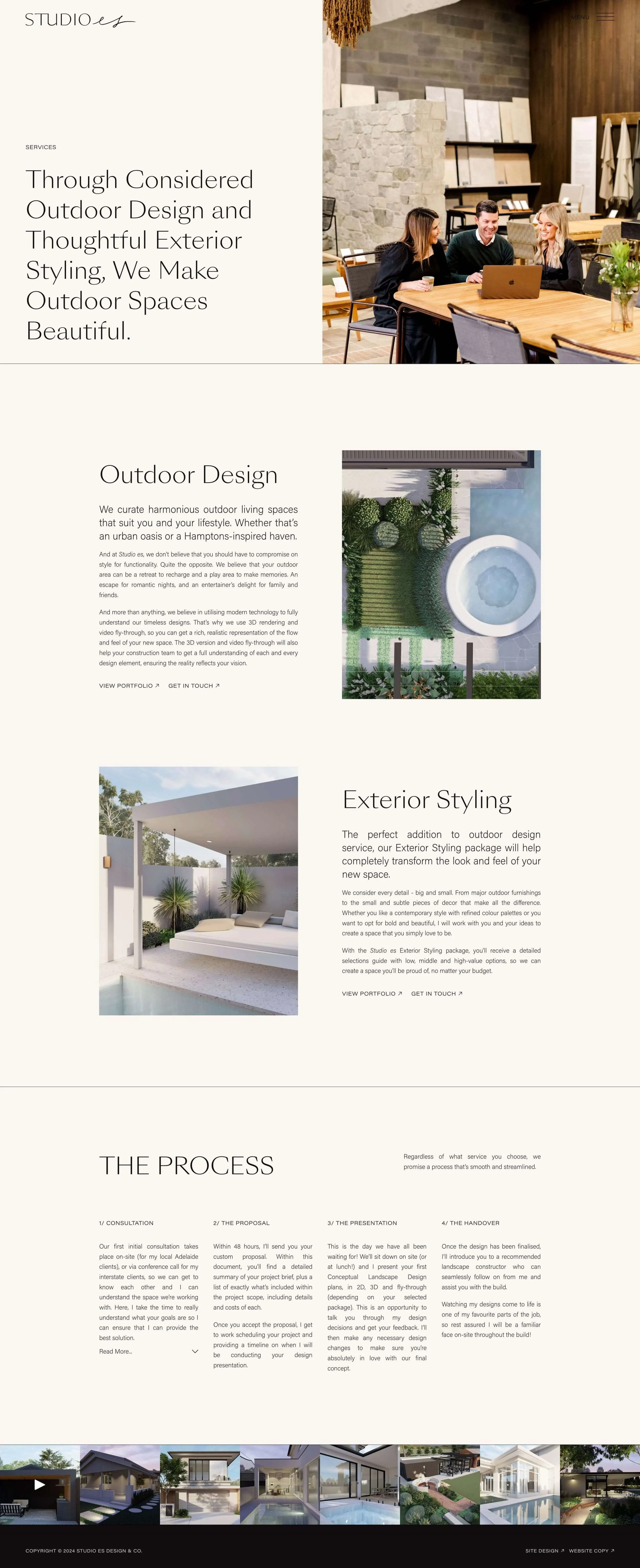Our copywriting strategy for Studio es was rooted in authenticity and innovation, in line with the ethos of its founder, Stephanie Walton. To set Studio es apart in the landscape design and exterior styling sphere, we highlighted its holistic methodology and dedication to crafting outdoor spaces that seamlessly integrate with clients' lifestyles.